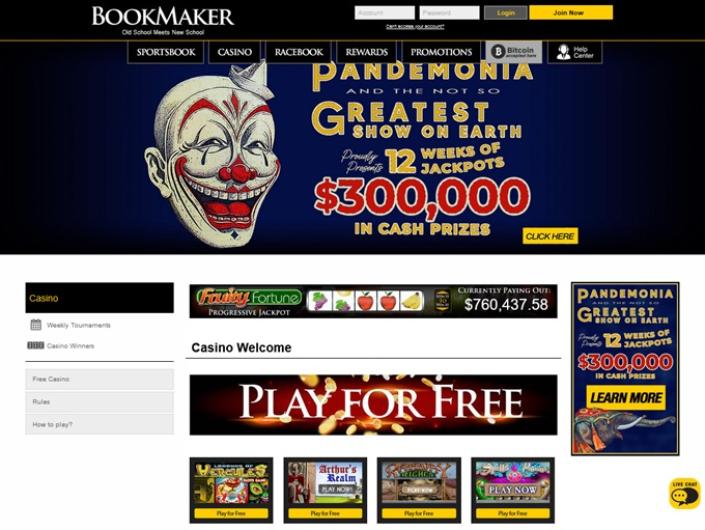 Bookmaker Casino is rated 1359 of 1633 casinos reviewed with a score of 2.3 out of 5 after 90 votes and it has 352 Slots offered from BetSoft, Digital Gaming Solutions, Genesis Gaming and 6 others with an average rating of 3.0 out of 5 after 17848 votes.